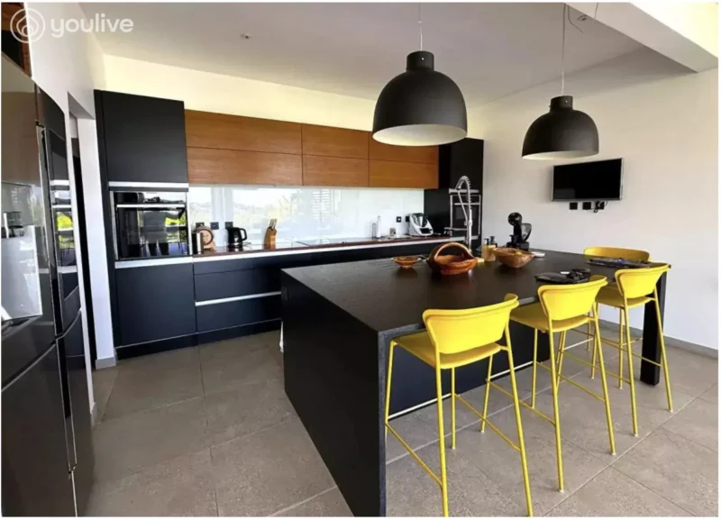 Pour une autonomie parfaite, la villa est assortie d’un groupe électrogène. Egalement équipées de visiophone et d’interphone, une domotique de pointe est à l’honneur ! vous pourrez contrôler à distance l’ouverture du portail, les volets roulants, l’éclairage, l’intensité lumineuse, et enclenchez aussi l’alarme ici ou